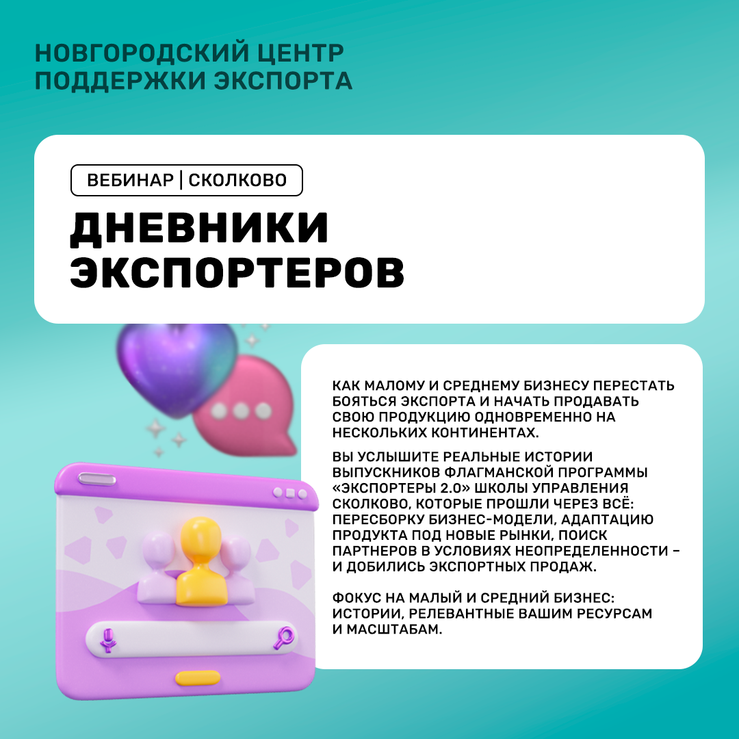 Центр поддержки экспорта Новгородской области и Школа управления СКОЛКОВО приглашает вас присоединиться к серии выпусков «Дневники экспортеров». Честный разговор между предпринимателями про практический опыт их пути выхода на международные рынки в условиях постоянно меняющейся реальности.