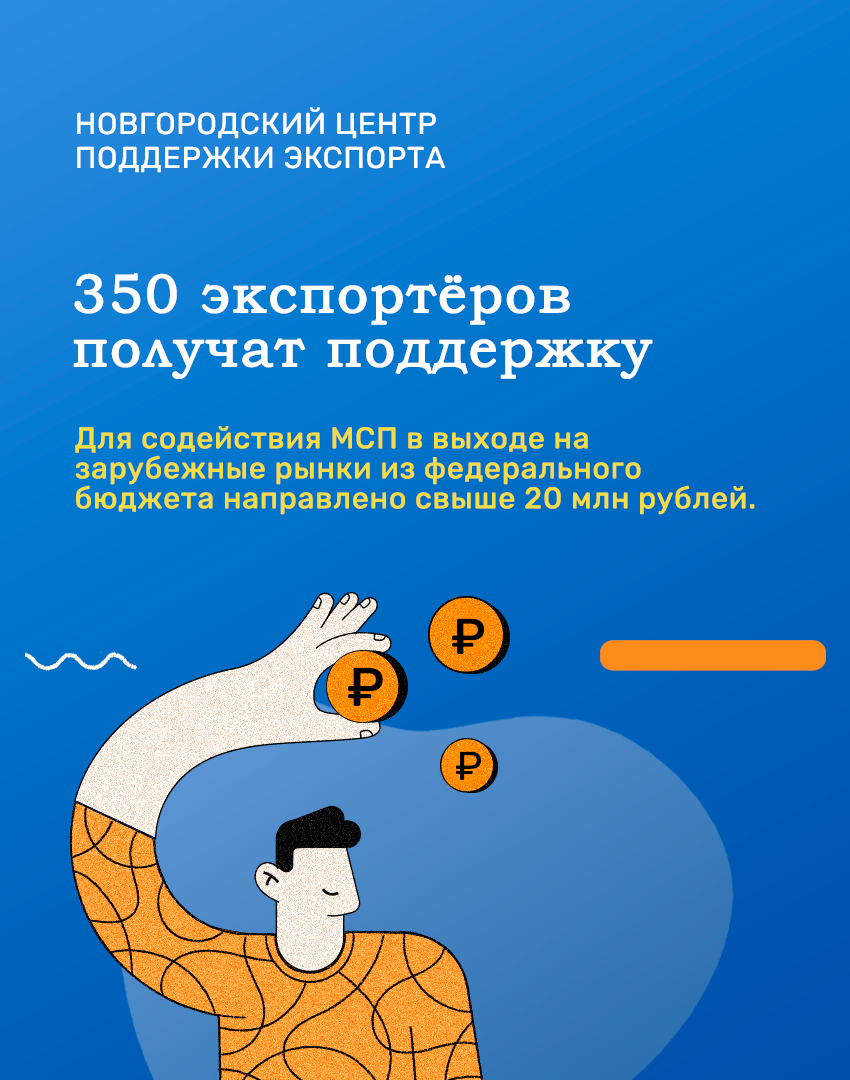 Для содействия малому и среднему бизнесу в выходе на зарубежные рынки Новгородскому центру поддержки экспорта из федерального бюджета направлено свыше 20 млн рублей.